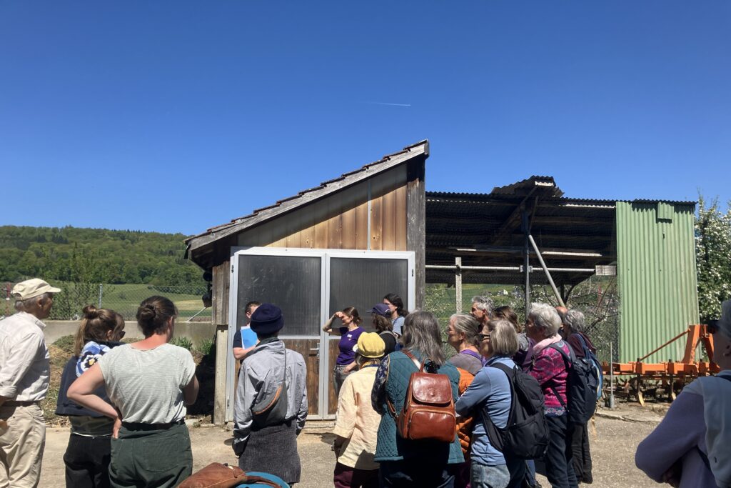 À l’issue de la partie officielle, la famille Hirt a présenté son exploitation et a accueilli les participante·s avec un repas de midi issu de la ferme – dont des burgers de volaille de leur propre production. La visite guidée qui a suivi a permis de découvrir les nombreuses branches d’activité de cette exploitation biologique : agroforesterie et grandes cultures, courges, baies, fruits d’arbres haute-tige et élevage de poule à deux fins. La ferme Hof zur Au, qui célèbre cette année son 200e anniversaire et fait partie du réseau de fermes de l’association, allie tradition et esprit d’innovation – et représente ainsi de manière exemplaire les valeurs que défend l’Association des petits paysans.