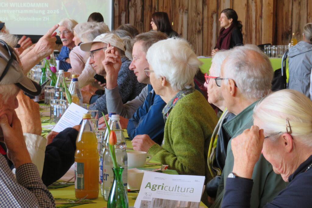 Avec plus de 110 participante·s, l’Assemblée générale de l’Association des petits paysans, qui s’est tenue le 25 avril, a une fois de plus attiré un public nombreux et illustré de manière saisissante le dynamisme et la diversité de sa base. Fidèles au principe d’être présents chaque année dans une région différente de Suisse, nous étions reçu cette fois-ci par la famille Hirt à la ferme Hof zur Au, qui fête son 200e anniversaire, dans l’arrière-pays zurichois. Outre une rétrospective de l’année écoulée, l’élection de deux nouveaux membres du comité et les perspectives concernant les défis politiques à venir ainsi que la PA 2030+ ont été au centre des discussions.