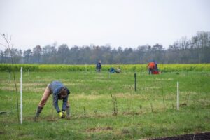 Je suis en visite à Wageningen, aux Pays-Bas. Un ami étudie l’agriculture à l’Université et je lui rends visite pour quelques jours. Lors d’un cours, un enseignant a présenté son projet de ferme, et ce week-end se déroule une action de plantation d’arbres. C’est ainsi que je fais la connaissance de la ferme Biesterhof, en dehors de Millingen sur le Rhin, en ce début décembre 2023.