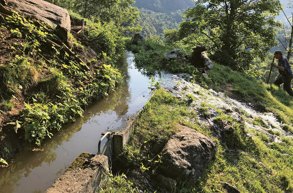 Des précipitations insuffisantes pour l’agriculture : un défi qui évoque le changement climatique ou les pays du Sud. Or ici, ce n’est pas le cas : dans les vallées sèches intra-alpines, l’eau a toujours été une denrée rare, les nuages se déversant principalement sur les versants nord et sud. En raison de ces caractéristiques naturelles, les populations ont dû chercher des solutions pour amener l’eau au bon endroit. Le système d’irrigation le plus fameux de Suisse se trouve en Valais. Dès le début du XIe siècle, il est attesté que les prairies, vergers et vignes étaient irrigués par les bisses, c’est-à-dire des canaux d’irrigation.