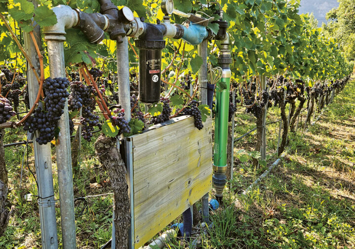 David Müller, qui exploite avec sa partenaire Piera Sutter la ferme bio Schmeli au-dessus de Brigue depuis trois ans, utilise aussi bien l’irrigation par ruissellement que le réseau par aspersion. La raison de cette double approche est pragmatique : des réseaux fixes d’arrosage par aspersion sont installés sur les terres agricoles, tandis que les agriculteurs et agricultrices de Brigue utilisent encore le système d’irrigation par ruissellement sur les terrains constructibles. David confirme que l’irrigation par ruissellement nécessite nettement plus de temps que l’arrosage. Il a le droit d’utiliser l’eau des bisses toutes les deux semaines pendant deux jours, aussi bien pour l’irrigation par ruissellement que pour le réseau par aspersion. Durant ces deux jours, il est totalement au service de l’eau, même la nuit parfois. Par rapport au passé, la charge de travail a toutefois diminué grâce aux installations d’arrosage par aspersion, car elles nécessitent moins de présence.