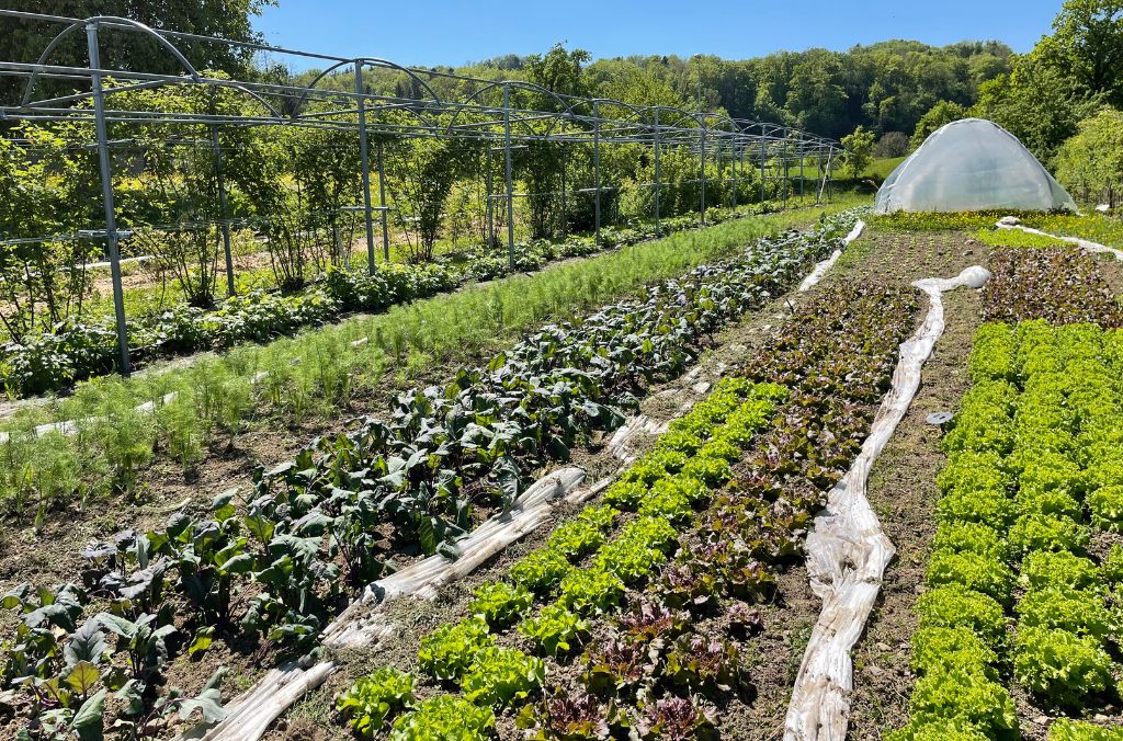 - Diversité dans la commercialisation: nous misons sur différents canaux de vente directe allant des abonnements légumes à la collaboration avec des restaurants et petites manufactures sélectionnées, en passant par notre stand au marché, un champ de fleurs en autocueillette et le parrainage d’arbres.