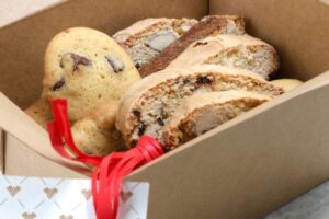 La boîte est arrivée hier sur le pas de la porte. Nous sommes fin prêts pour les fêtes. God Jul!