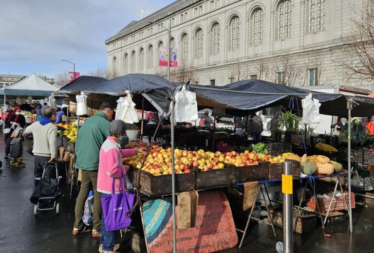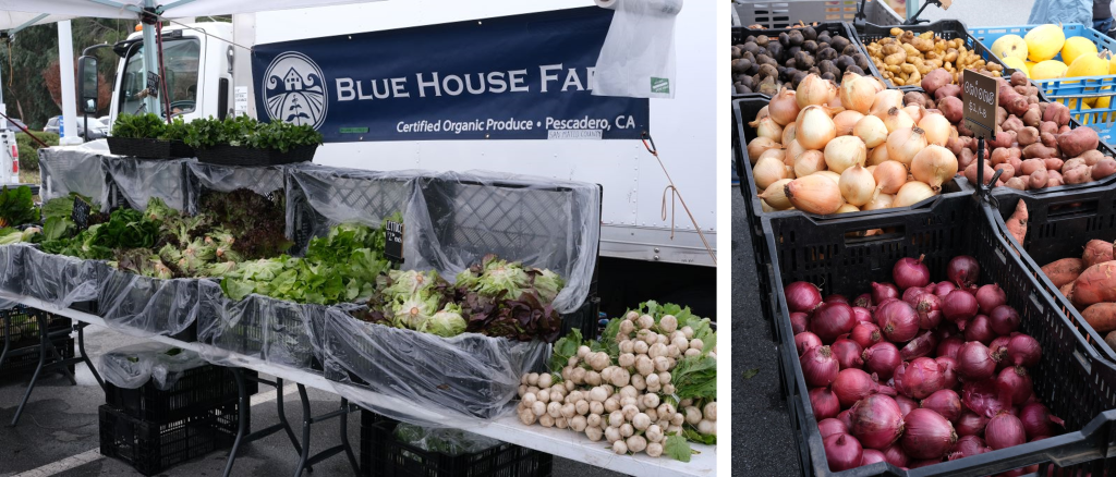 Blue House Farm fait pousser une incroyable diversité de fruits et légumes bio depuis 2005. Toute la production est vendue directement au marché ou par des abonnements CSA. Le fondateur, qui ne vient pas d’une famille agricole, a lancé son exploitation bio après avoir effectué un stage au Center for Agroecology and Sustainable Food Systems de UC Santa Cruz, grâce à un bail sur des terres de POST Peninsula Open Space Trust (qui protège les espaces ouverts pour le bien de toutes et tous), pour la restauration et l’entretien d’un ranch historique. (College of San Mateo Farmers’ Market)