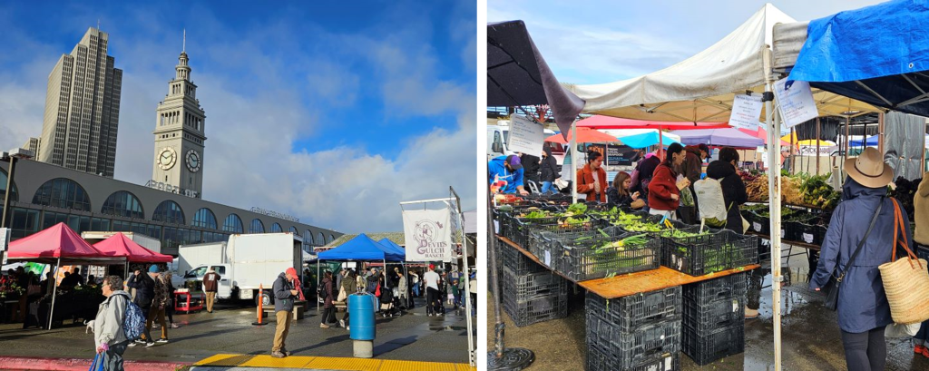 Le Ferry Building sur l’Embarcadero est un lieu emblématique de la ville de San Francisco, deuxième terminal de transit du monde dans les années 1930, a été transformé en un ensemble de magasins d’épicerie fine. Il s’y déroule de plus trois fois par semaine le Ferry Plaza Farmers Market, marché de producteurs trois fois par semaine parmi les plus connus du pays où viennent s’approvisionner des chefs locaux et des amateurs de bonne cuisine.